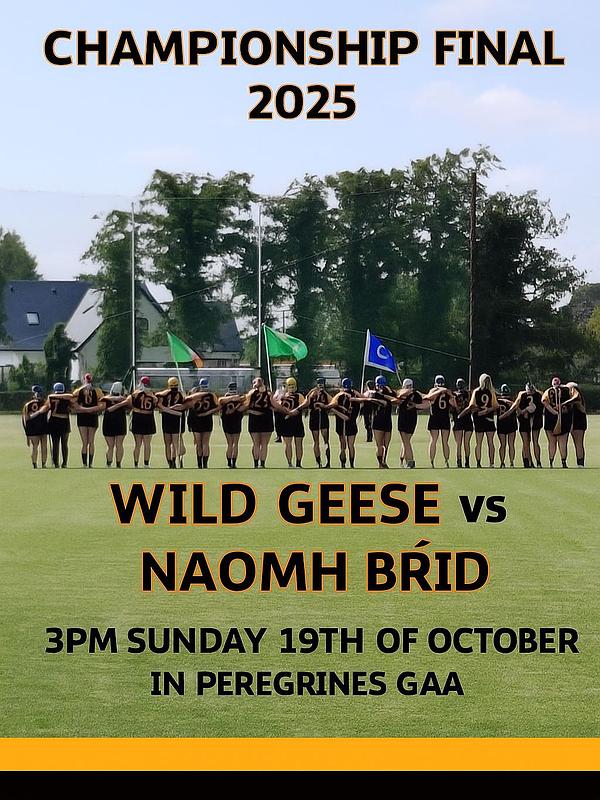 “All roads lead to Peregrines! 🏆 The stage is set for the Championship Camogie Final 2025 — Wild Geese vs Naomh Bríd. Pride, passion, and pure determination collide this Sunday at 3pm. Let’s make history together!