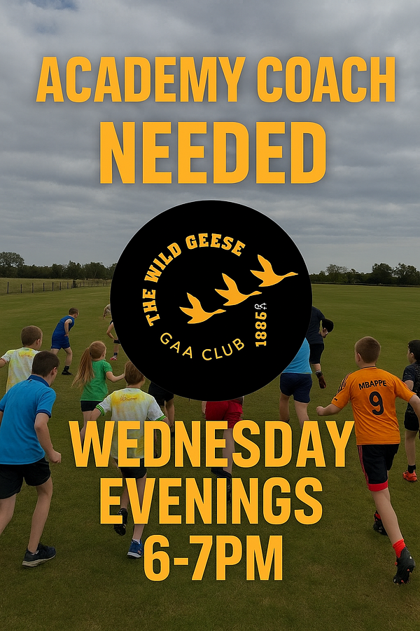 Wild Geese GAA are looking for academy coaches/volunteers to support our growing nursery group.