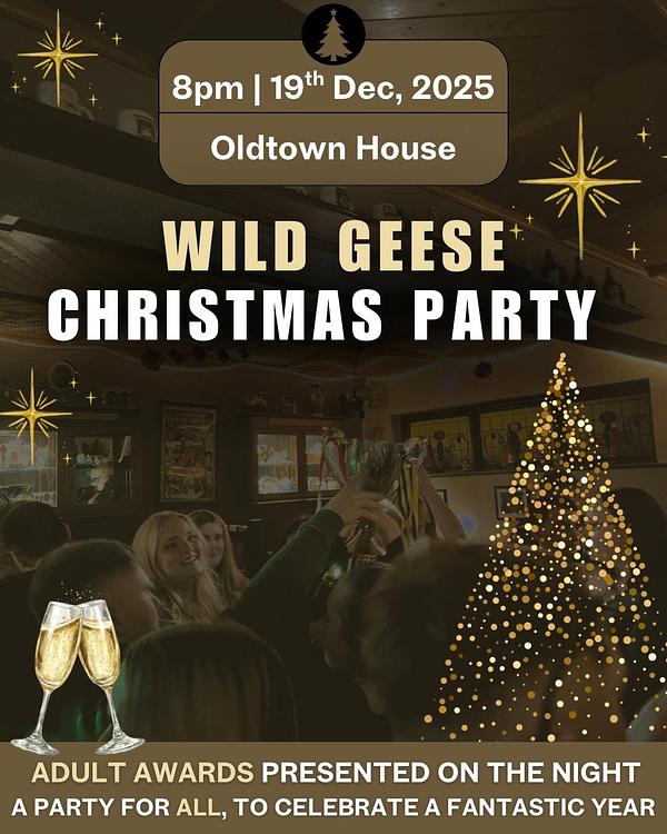 Join us for the Wild Geese Christmas Party on 19th December at 8pm in Oldtown House!