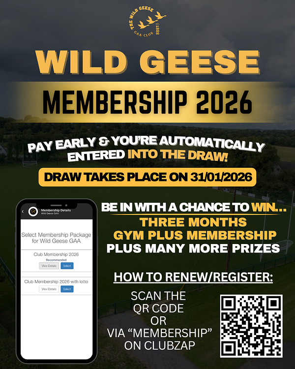 #WildGeeseGAA #Membership2026 #JoinEarly #ClubZap #PrizeDraw