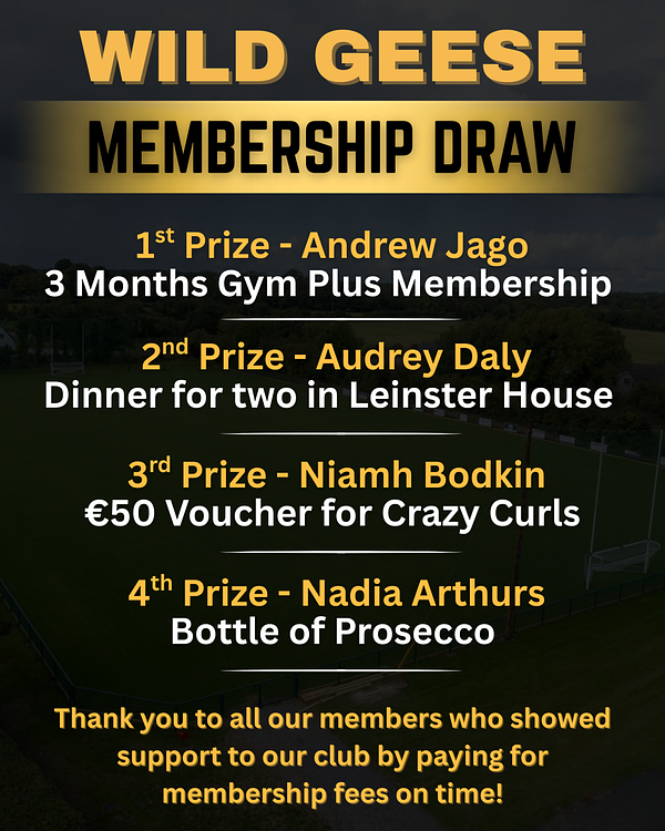 Huge congratulations to all the winners in our Wild Geese Membership Draw 👏