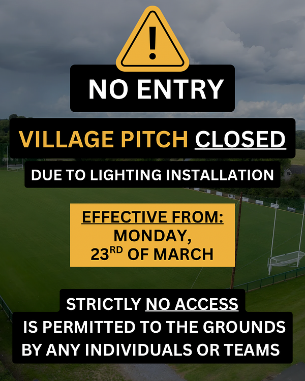 The village pitch is now closed with immediate effect due to lighting installation works.