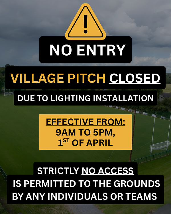 The village pitch will be closed TOMORROW from 9AM–5PM due to lighting installation works.